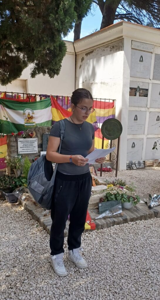 La primera parada ha estat a la Jonquera, on han fet una visita guiada al Museu Memorial de l’Exili (MUME) molt interessant. Hem continuat fins al poble de Cotlliure: ens hem acostat fins a la tomba de l’escriptor Antonio Machado, a qui se li ha dedicat la lectura d’alguns dels seus poemes; a la platja, també han fet la lectura d’alguns fragments de La maternitat d’Elna. Per últim, han fet una breu parada a la platja d’Argelers, la qual va ser un dels camps de concentració de milers d’exiliats durant la Guerra Civil.