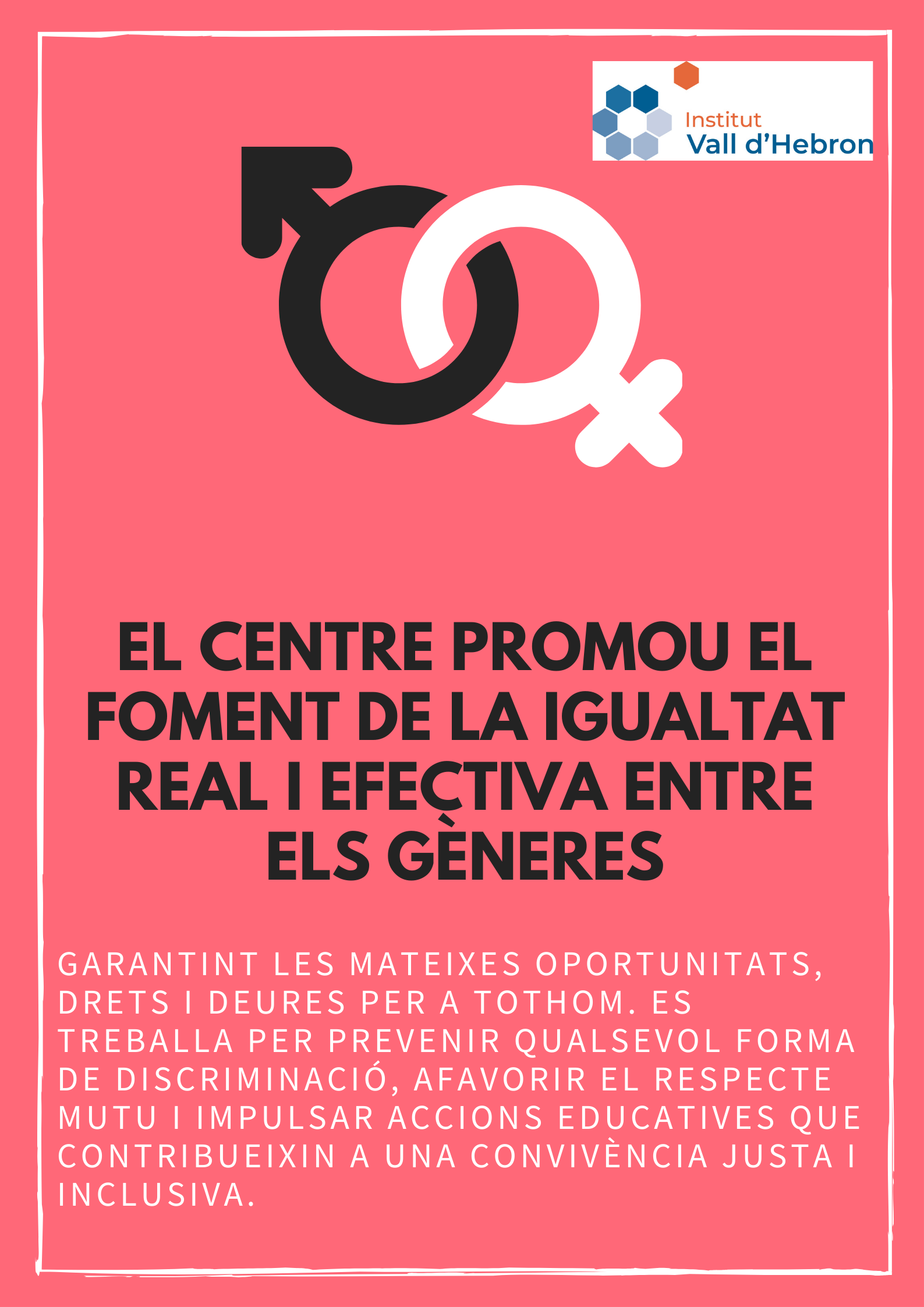 Des de l’Institut Vall d’Hebron volem crear un espai per prevenir, detectar i abordar situacions de discriminació, violència i assetjament dins la comunitat educativa, promovent el respecte, la convivència i la igualtat d’oportunitats entre tot l’alumnat.