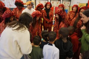 any, s’han vestit de patges reials per a poder ajudar als tres reis mags a recollir les cartes que
