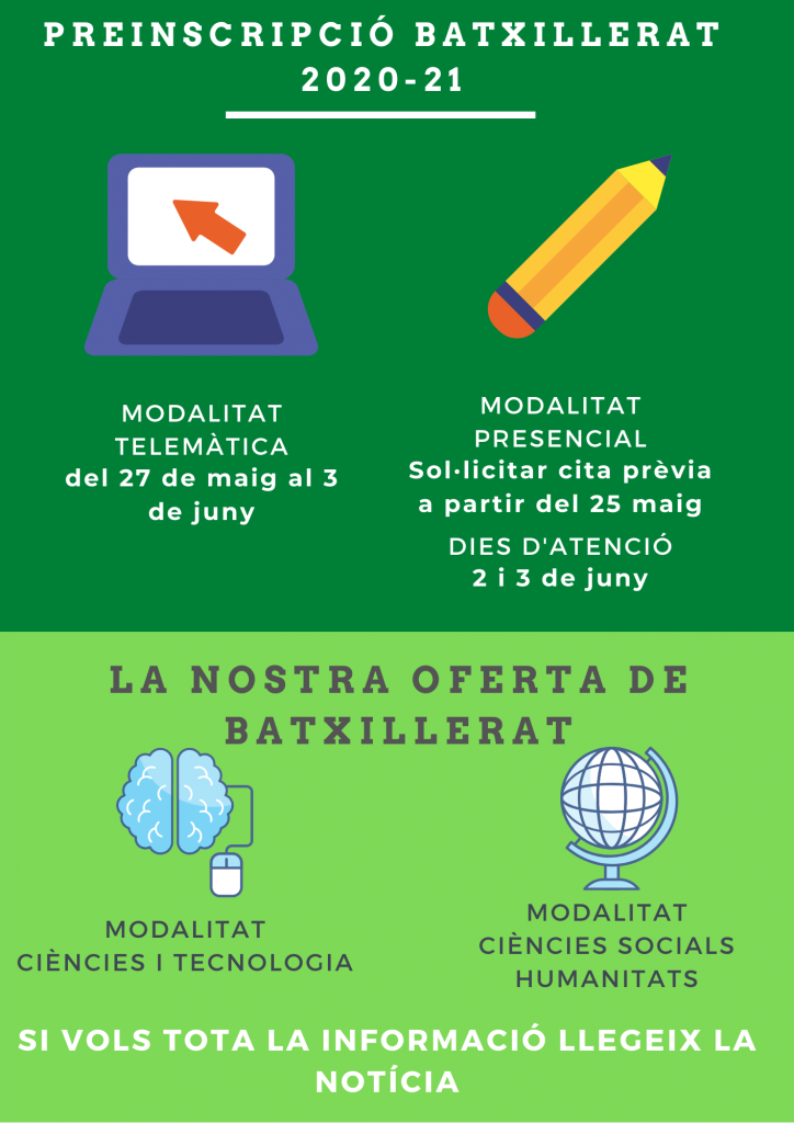 PREINSCRIPCIÓ BATXILLERAT [2020-21]: Què cal saber i com s’ha de fer?