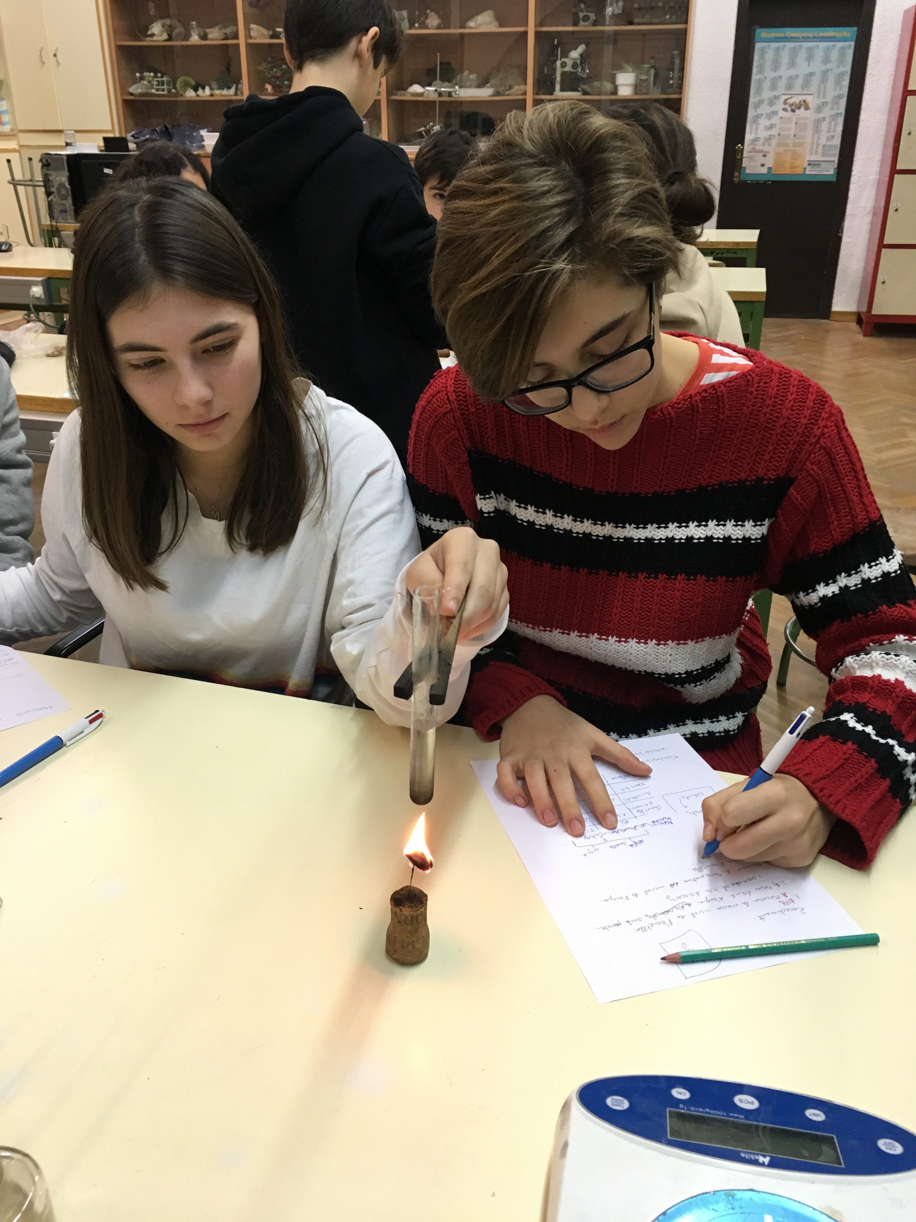 Dins del projecte de Nutrició emmarcat en les assignatures de Biologia i Educació Física de 3r d’ESO, els alumnes han treballat al laboratori que és la caloria, tot cremant fruits secs i veient l’energia calòrica que ens aporten, tot mesurant l’increment de temperatura produït en l’aigua.