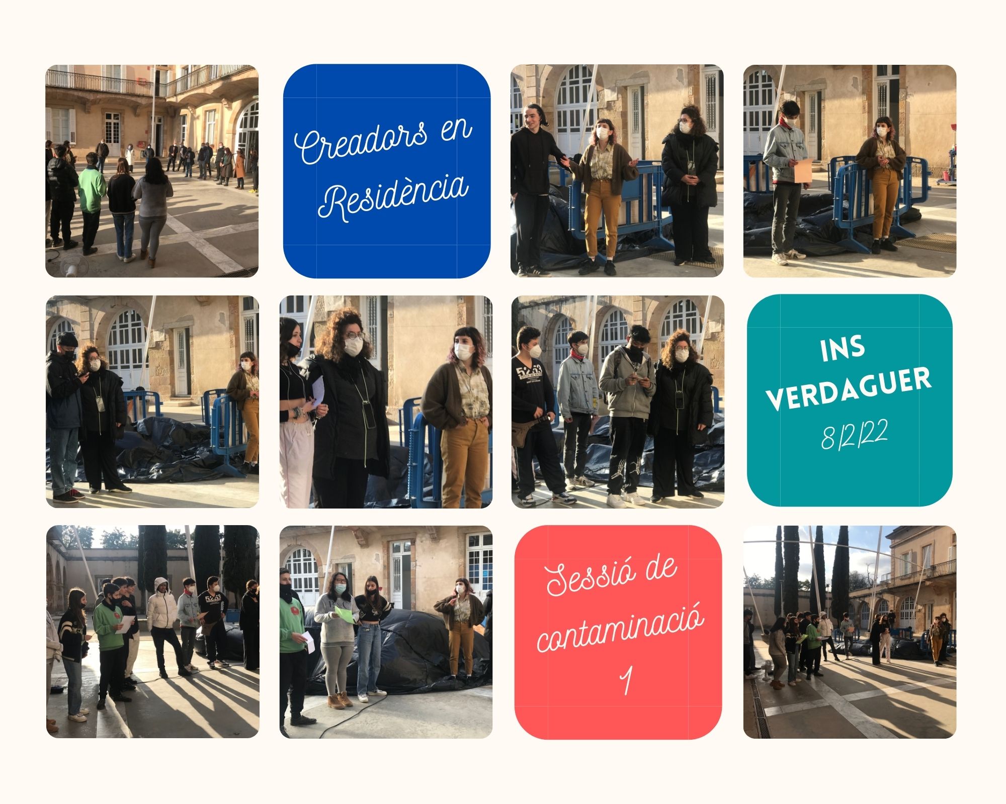Els alumnes de Creadors en Residència van fer “la sessió de contaminació” davant de l’equip docent de 4t d’ESO. En aquesta sessió els alumnes van fer una instal·lació-performance que feia referència al globus com a element lúdic i simbòlic. Van crear una escultura viva i efímera formada per bosses d’escombraries unides, creant una estructura que representa l’espai que ocupa mitja aula de dibuix, jugant amb l’espai, amb l’ocupació d’un espai, el buit, el moviment, l’aire que ens envolta… En aquest acte es va veure la participació i el treball dels alumnes a la creació d’una obra d’art contemporània guiats per l’artista Natalia Domínguez.