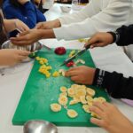 che de botifarra i una tisana de fruites. Vam aprendre a manipular els aliments i els estris de cuina, i sobretot, ho vam degustar i era molt bo! En definitiva, vam veure com ens uneix el menjar, les nostres arrels llatines i el nostre present -i futur!- català.