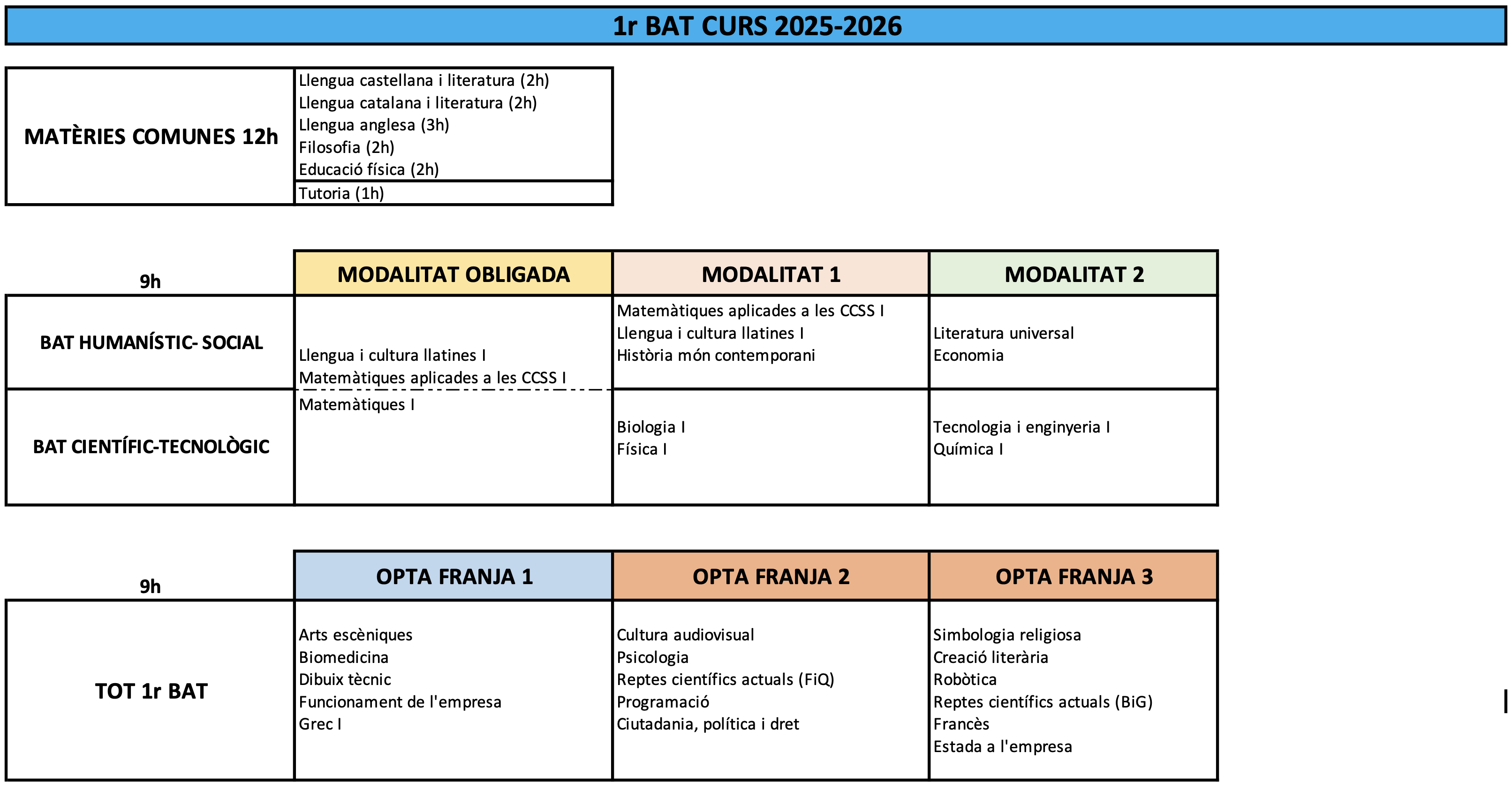 Matèries comunes d’opció, de modalitat i específiques