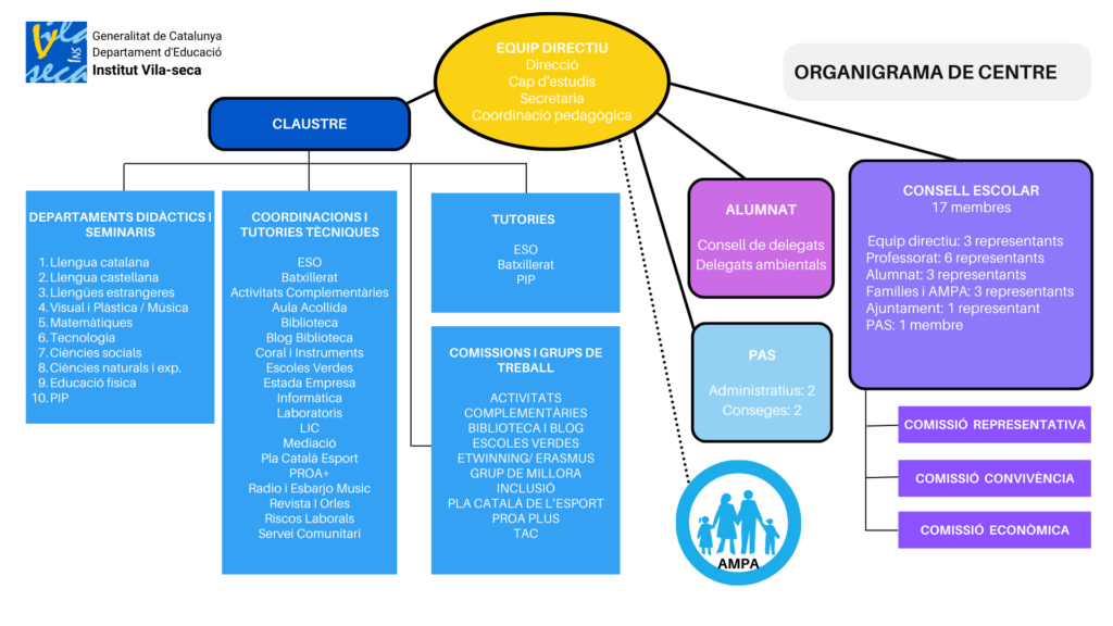 Organigrama Direcció: Mònica Torregrosa Belló Cap d’estudis: Laura Nomen Miralles Secretaria: Anna Robert Rovira Coordinació pedagògica: Francisco Javier del Río Bocío