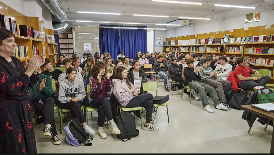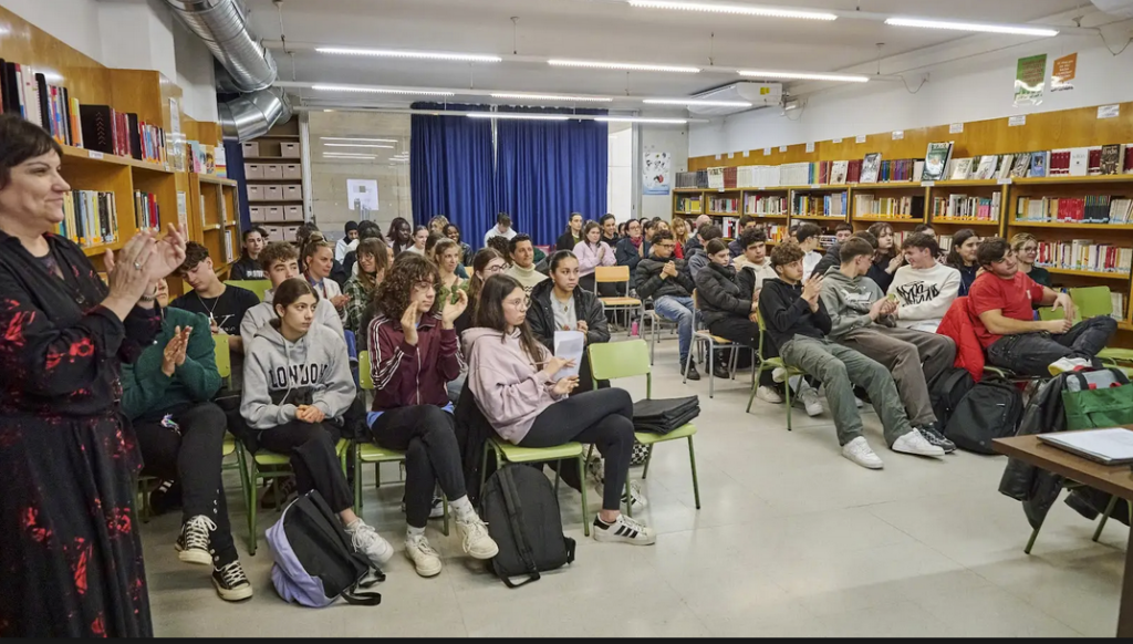 En l’acte, que ha tingut lloc a la biblioteca, i després de la lectura d’un text de presentació magnífic llegit per la professora Raquel Gancholas, els alumnes de l’assignatura de Creació Literària Oumou Bah, Rocío Besós, Andrei Dumitrescu, Nil Parral i Inés Reyes  ens han llegit diverses composicions poètiques elaborades per ells mateixos. Tots hem quedat fascinats per la gran qualitat dels seus escrits i per la magnífica manera de llegir-los.