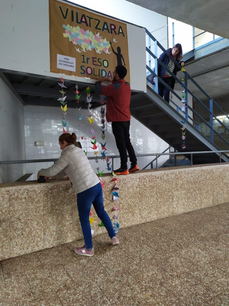 En el marc de La Marató de TV3, i com és habitual al nostre centre, l’alumnat de 1r d’ESO ha participat a la campanya 1 origami 1 euro, impulsada per la Fundació MGC. Aquesta donarà un euro per cada figura de paper en benefici de La Marató de TV3 2023, dedicada a la salut sexual i reproductiva. Aquest curs hem aconseguit una gran xifra, elaborant fins a 343 origamis!