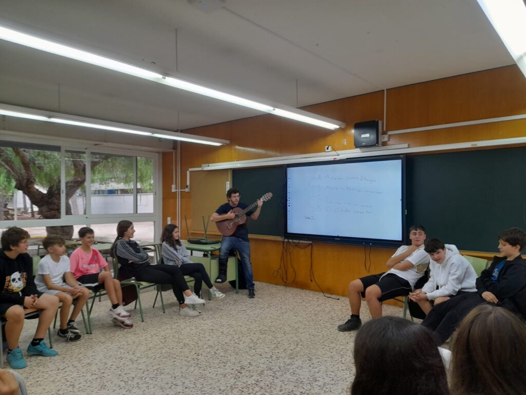 2n d’ESO, glosant a ritme de guitarra Aleix Pla26/10/23 Aquesta setmana els alumnes de 2n d’ESO participen en un taller de glosa per aprendre a rimar a ritme de guitarra. Una forma divertida i relaxada d’acostar-se a la poesia que els ha entusiasmat.