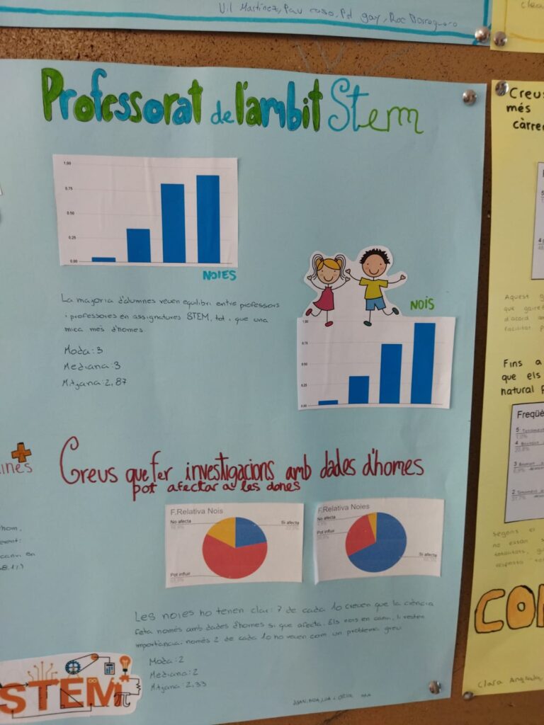 4t d’ESO fa un estudi sobre estereotips de gènere Marisa Montes27/03/26 Els grups de 4t d’ESO han fet un estudi estadístic sobre si hi ha estereotips de gènere entre l’alumnat de 4t que puguin influir en la tria d’un itinerari STEM. Ha sigut un treball interessant que ens ha portat a reflexionar molt!