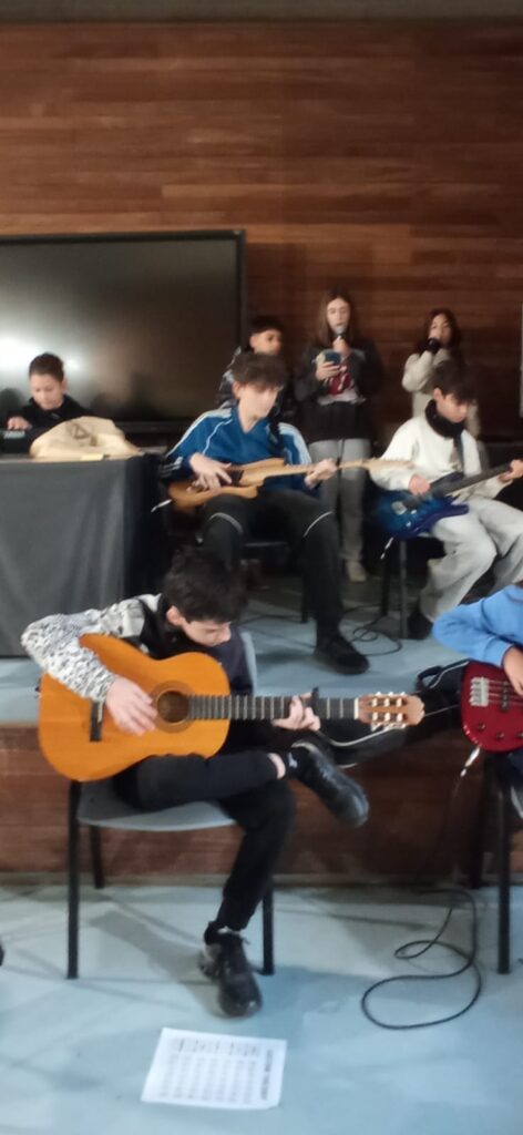 L’alumnat de 1r d’ESO està practicant amb instruments per poder tocar una cançó a final d’any. Concretament, us podem avançar que els alumnes de 1r ESO B estan assajant la cançó Olivia, del grup mataroní The Tyets. També, 1r d’ESO A ha triat la seva peça musical, i està preparant Tú me dejaste de querer, del C. Tangana.