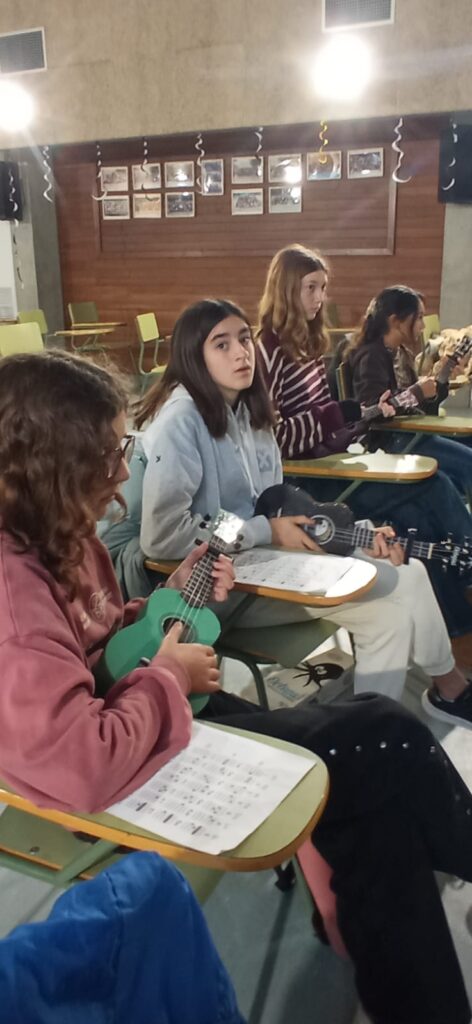 L’alumnat de 1r d’ESO està practicant amb instruments per poder tocar una cançó a final d’any. Concretament, us podem avançar que els alumnes de 1r ESO B estan assajant la cançó Olivia, del grup mataroní The Tyets. També, 1r d’ESO A ha triat la seva peça musical, i està preparant Tú me dejaste de querer, del C. Tangana.