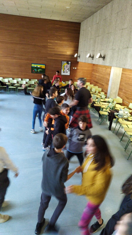 El passat 28 de novembre, els alumnes de 1r de l’ESO, després de treballar a les classes de llengua anglesa els aspectes més rellevants sobre la cultura escocesa, van poder participar en el Taller de dansa escocesa (Céilidh) que en Donnie Nicolson va venir a impartir al centre. Cal dir que en Donnie, nascut a Fort William Highlands             (Escòcia), fa dansa des que era petit, ha estat un gaiter premiat i fa tallers de céilidh per tot Europa. Els alumnes van poder conèixer algunes de les tradicions, cançons i danses escoceses més populars. Amb la bandera escocesa de fons, portava la típica faldilla escocesa (kilt), els mitjons amb el ganivet (hose & Sgian Dubh) i tot el que es requereix per vestir com un escocès com cal. Va tocar la guitarra, va fer cantar als nostres alumnes i els va fer ballar. Els alumnes i professors van quedar ben engrescats amb l’activitat i va ser molt ben valorada. Gaudiu les imatges.