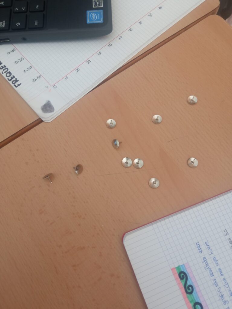 Algú sap quina és la probabilitat que al llençar una xinxeta aquesta caigui cap avall? És la pregunta que ens hem fet a les Matemàtiques de 1r d’ESO. Encara no tenim resposta però hem decidit repetir molts cops l’experiment i analitzar els resultats.