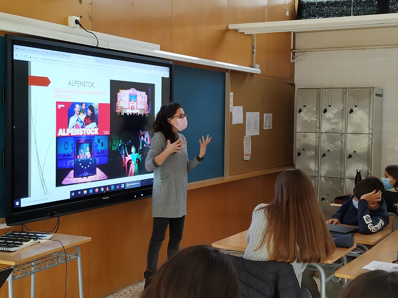 En un cas, es tracta de la professora Elisabet Siles, que ha fet xerrades als grups de 2n d’ESO per parlar de l’escenografia com a element indispensable per a la producció i realització teatral i audiovisual. Aquest és un àmbit que l’Elisabet coneix bé, atesa la seva trajectòria professional com a escenògrafa i figurinista, amb col·laboracions amb les companyies Chrome Teatre, la Solitària, Pirates Teatre, i també amb la creació i suport tècnic d’espectacles per Dara, Obskené, les Bianchis, Cia. Les Maniquies, entre d’altres. L’Elisabet també ha estat assistent en produccions del Teatre Lliure i ha format part de l’equip de vestuari en pel·lícules destacades com: “El Fotógrafo de Mathausen” i “Una carta para Evita” d’Agusti Villalonga, així com en òperes del Festival de Peralada (“Turandot”) i en l’Òpera Real de Mascate (“Madame Butterfly”) o en espectacles de gran format com “Messi10” del Cirque du Soleil, el Musical “Mamma Mia” i en d’altres produccions cinematogràfiques i televisives com “Merlí Sapere Aude”.