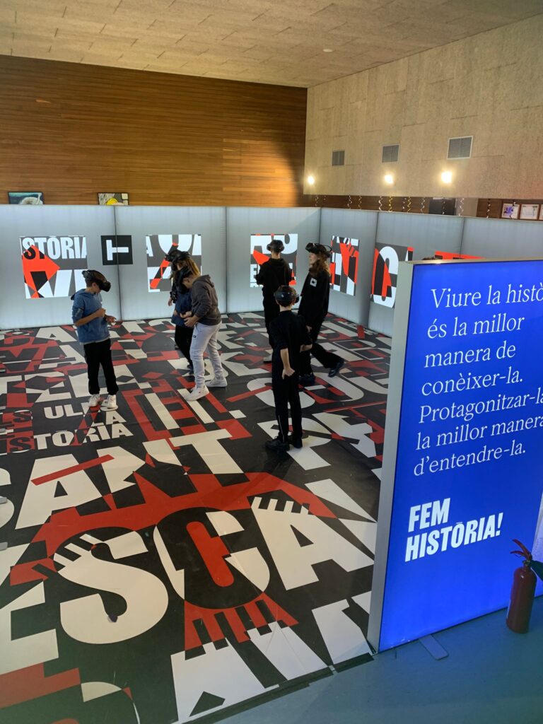 Avui dimarts un grup d’alumnes de 1r d’ESO ha pogut gaudir d’una experiència immersiva de realitat virtual a la sala d’actes. Amb la col·laboració de l’Agència Catalana del Patrimoni Cultural, des del departament de Ciències Socials s’ha posat en marxa “Els Ulls de la història“, activitat centrada en la Prehistòria.