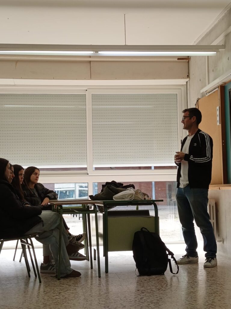 El periodista, amb una llarga trajectòria a Esports RAC1, va fer una visita als alumnes formats com a tècnics de ràdio de l’institut. Entre d’altres va explicar i donar consells per entendre els rols d’una locució i saber-los aplicar correctament en la retransmissió d’un partit, sense deixar de banda el treball previ abans d’arrencar amb el directe.