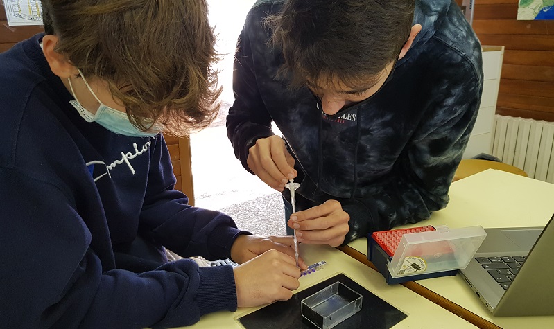 Els alumnes de Biologia de 1r i 2n de Batxillerat han treballat al laboratori amb material facilitat pel CRG (Centre de Regulació Genòmica). La pràctica s’ha dut a terme amb diverses mostres d’ADN amb les quals s’ha pogut realitzar una electroforesi en gel d’agarosa. Aquesta tasca ha permès a l’alumnat seguir part del procediment utilitzat en les proves d’identificació d’ADN.