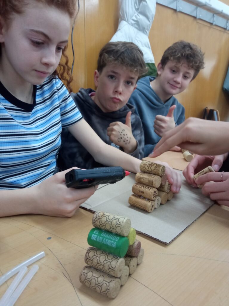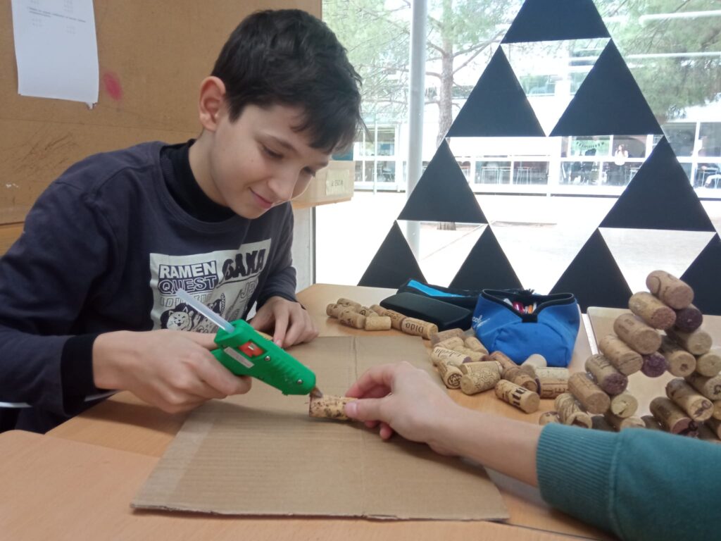L’alumnat de 1r d’ESO comença a construir un triangle gegant a Matemàtiques Aleix Pla27/11/23 Amb l’alumnat de 1r d’ESO hem començat a construir un triangle de sierpinski gegant amb taps de suro! En necessitarem 729. Sabeu d’on surt aquest número?