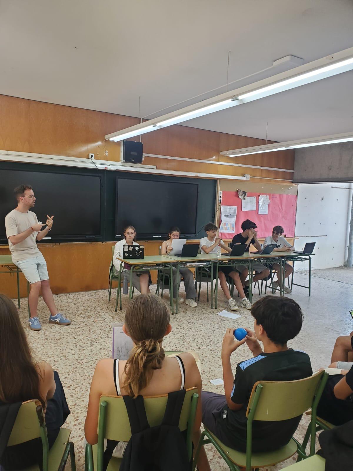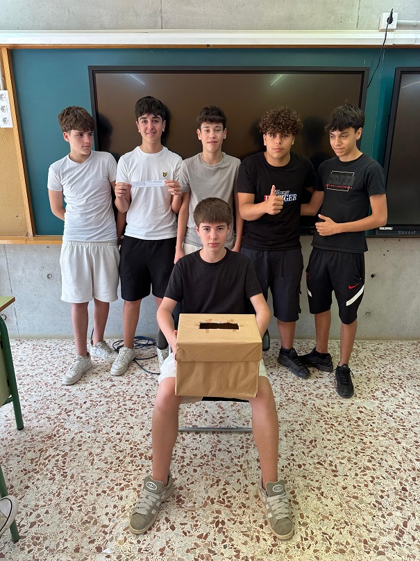 Després de crear el seu partit polític, dissenyar un cartell de campanya i enregistrar un vídeo promocional, els alumnes han fet un debat electoral a classe i han votat la millor opció política per al poble.