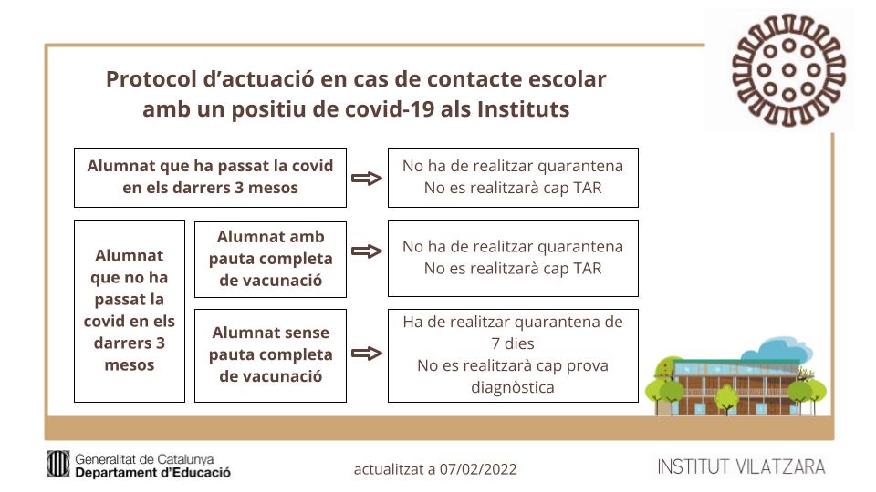 • L’alumnat que que ha passat la covid-19 els últims tres mesos, no han de realitzar cap quarantena i no se’ls activarà cap TAR (test d’antígens ràpid).