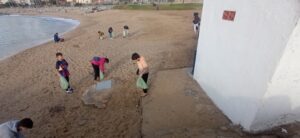 Al voltant de 20 alumnes de 3r d’ESO van participar a la segona neteja de platja organitzada per l’associació de pescadors de l’espigó de Garbí.