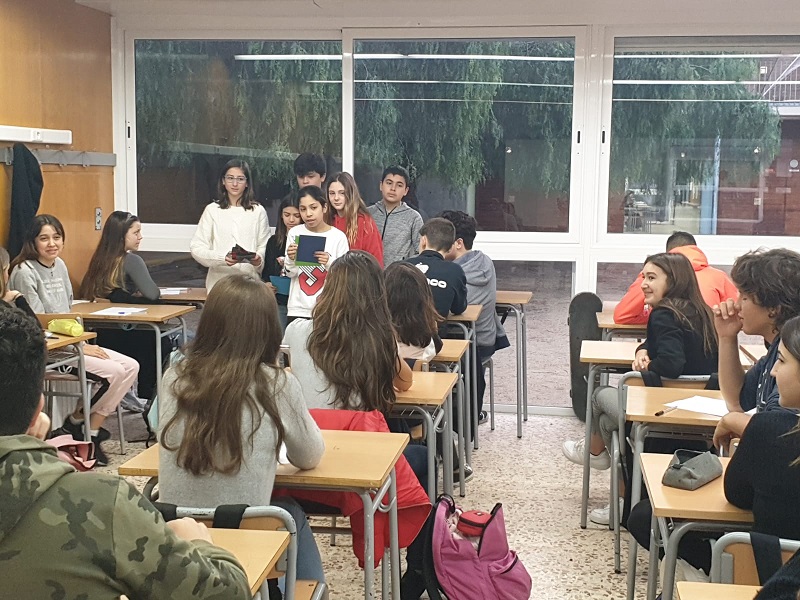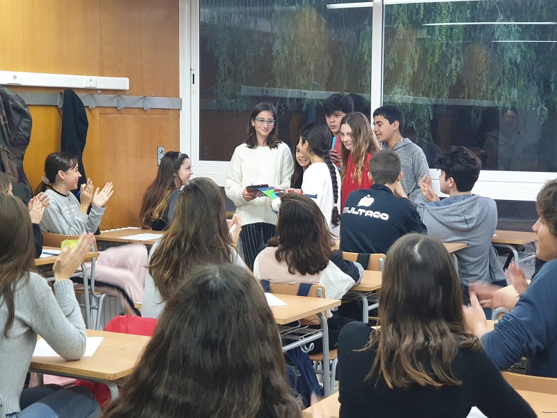 Els alumnes de 1r de l’ESO van preparar unes postals de Nadal per tal d’agrair l’acompanyament que estan rebent per part dels seus companys de 1r de batxillerat. Un cop les postals van estar a punt, els delegats de cada classe van anar a sorprendre els seus “padrins” per fer-los l’entrega de les postals, pocs dies abans de les vacances. Aquí us deixem unes simpàtiques fotografies.