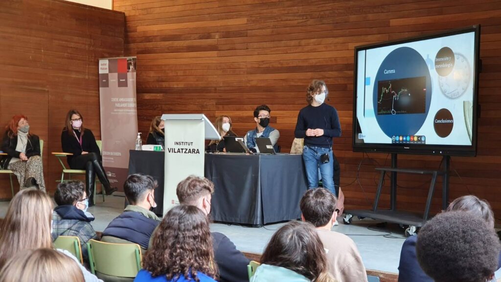 L’alumnat seleccionat s’ha aplegat a la Sala d’Actes per mostrar les exposicions dels seus treballs a estudiants que actualment cursen 1r de Batxillerat. Tot seguit s’ha iniciat un col·loqui, moderat per les professores Natàlia Aliaga i Raquel Úbeda, per tal de resoldre dubtes i inquietuds de l’alumnat que ha de fer el TR.