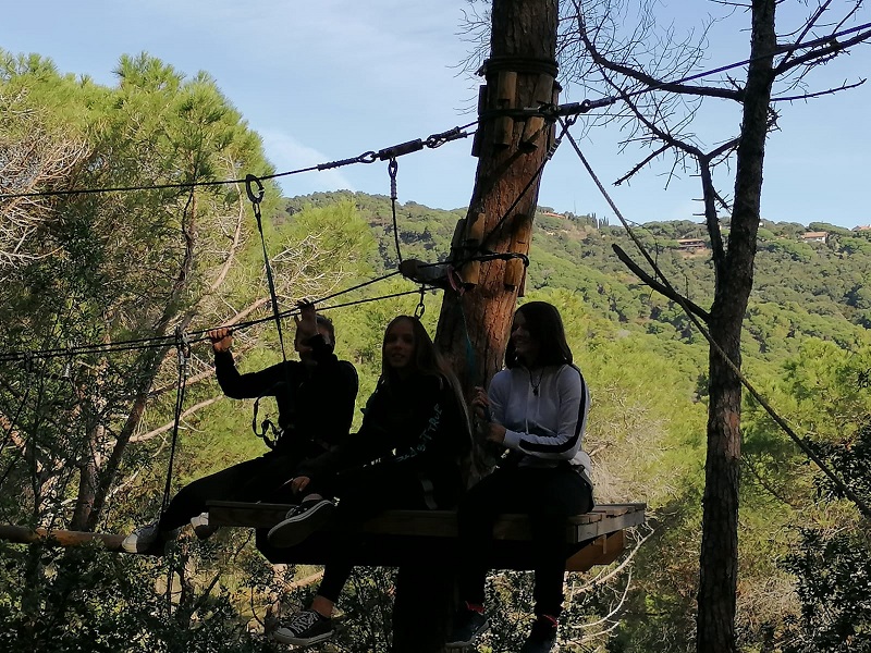 Els alumnes van poder pujar als arbres i posar a prova els seus dots d’equilibri i destresa. Hi havia diversos graus de dificultat: circuit verd, circuit vermell, circuit blau i circuit groc.