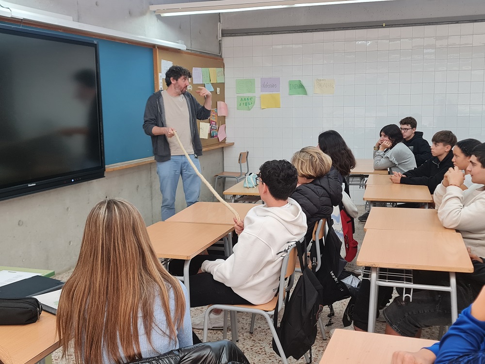 La Corda és un taller per aprendre a identificar les relacions abusives i ajudar a construir vincles més sans i igualitaris. A partir d’una petita representació teatralitzada i altres dinàmiques els alumnes han pogut fer una reflexió col·lectiva al voltant de la violència masclista.