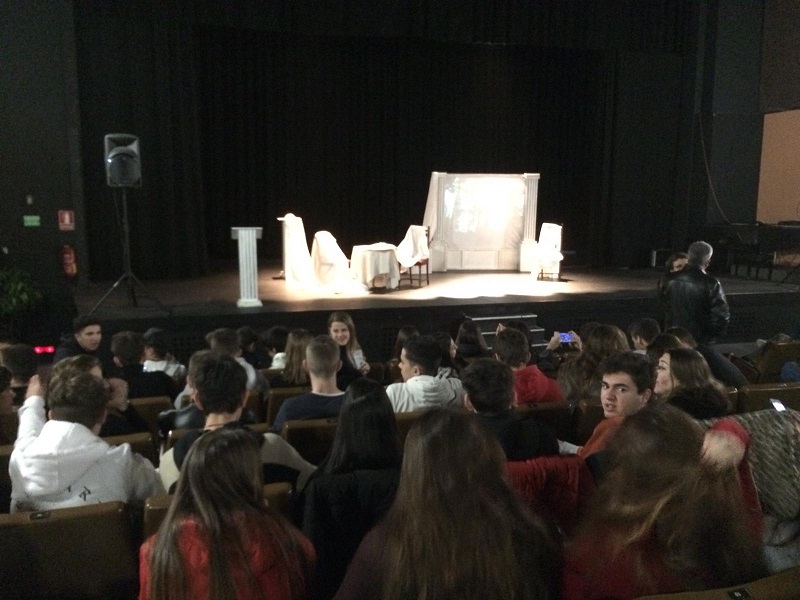 En acabar l’obra, es va encetar un col·loqui amb els actors i actrius que va permetre als alumnes resoldre dubtes i curiositats sobre l’obra representada i sobre el món del teatre.