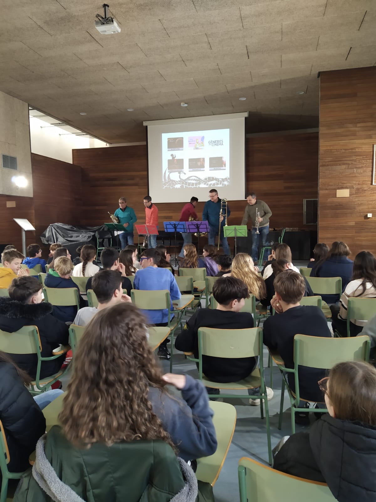 El passat dilluns 10 de març, l’alumnat de 2n d’ESO va gaudir d’una audició musical de cinema en directe a la sala d’actes del centre.