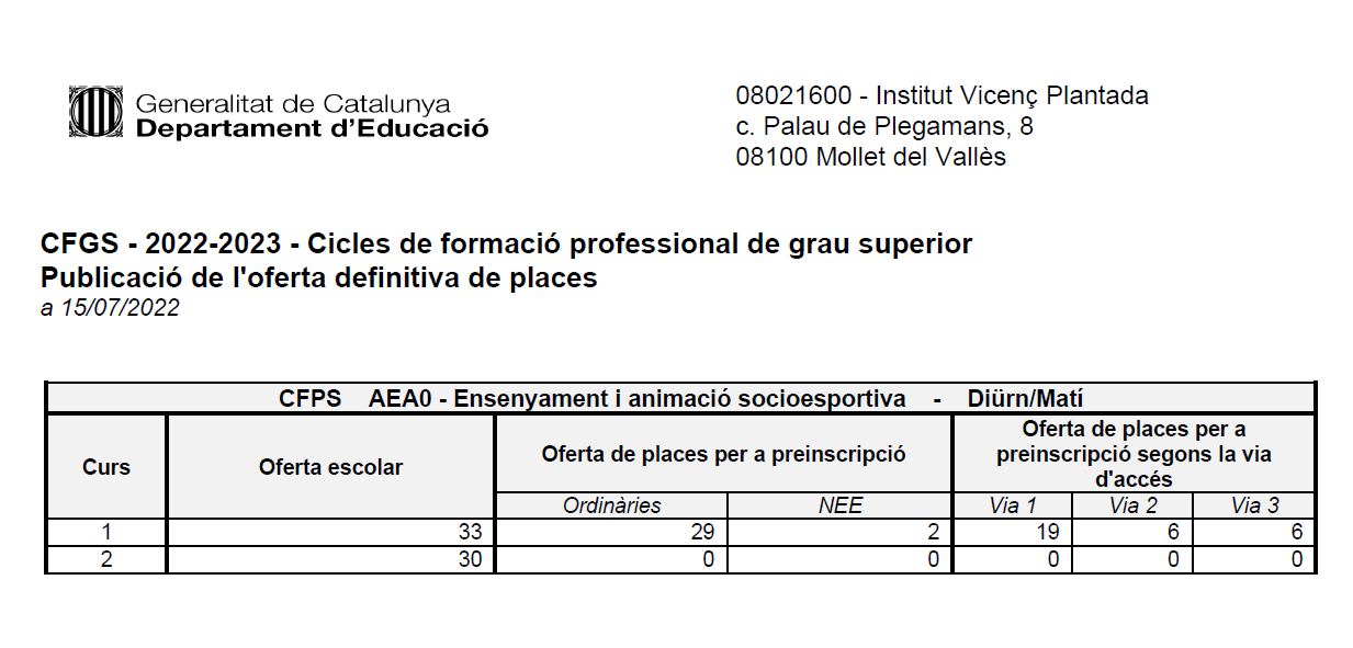Les classes s’iniciaran el proper dia 7 de SETEMBRE DE 2022