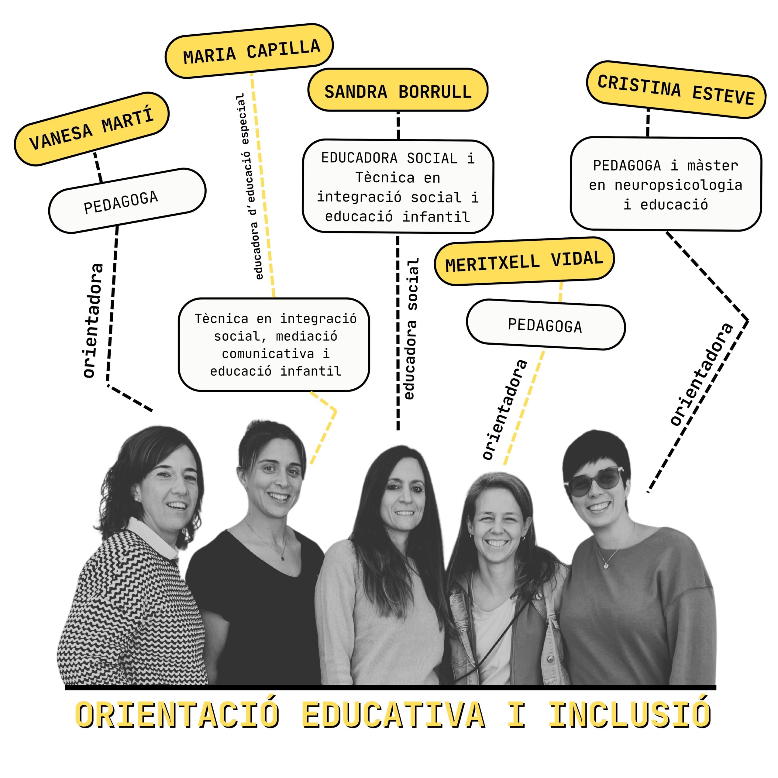 Les orientadores educatives tenen com a funció principal acompanyar l’alumnat, les famílies i el professorat en el procés educatiu, amb especial atenció a la inclusió, l’orientació acadèmica i professional i la prevenció de l’abandonament escolar. Són especialistes en orientació psicopedagògica i treballen en estreta col·laboració amb l’equip directiu, l’equip docent i en xarxa en Serveis Educatius (EAP, CRETIDC, CREDV, CREDA) i altres serveis del territori (Serveis Socials i altres entitats educatives).