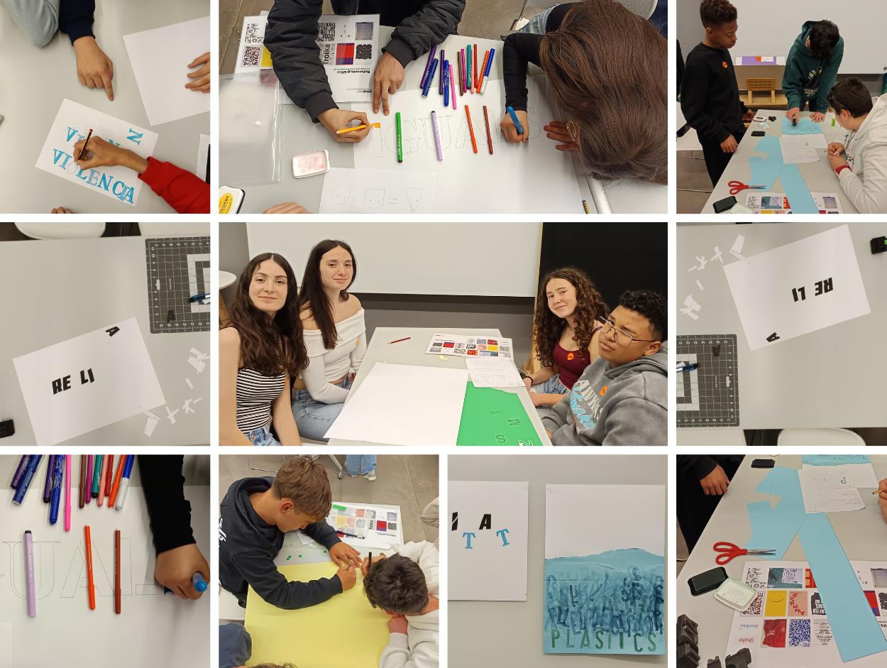 La visita es va completar amb el taller “Pensar amb els ulls i mirar amb el cervell”, on els i les alumnes van assumir el repte de donar resposta a un encàrrec real, desenvolupant una proposta de cartell. Un exercici que els va obligar a prendre decisions, a seleccionar què volien dir i com volien dir-ho.