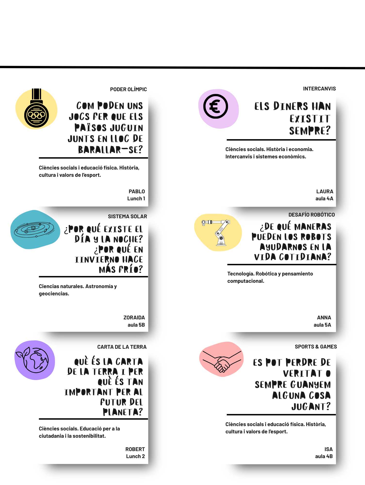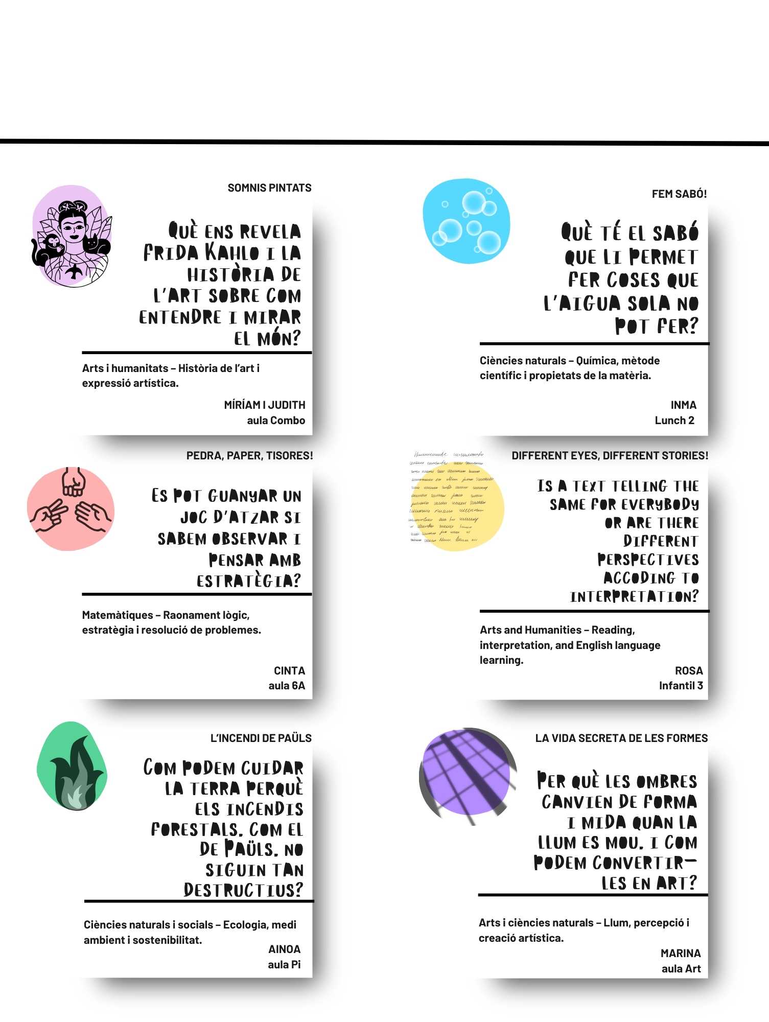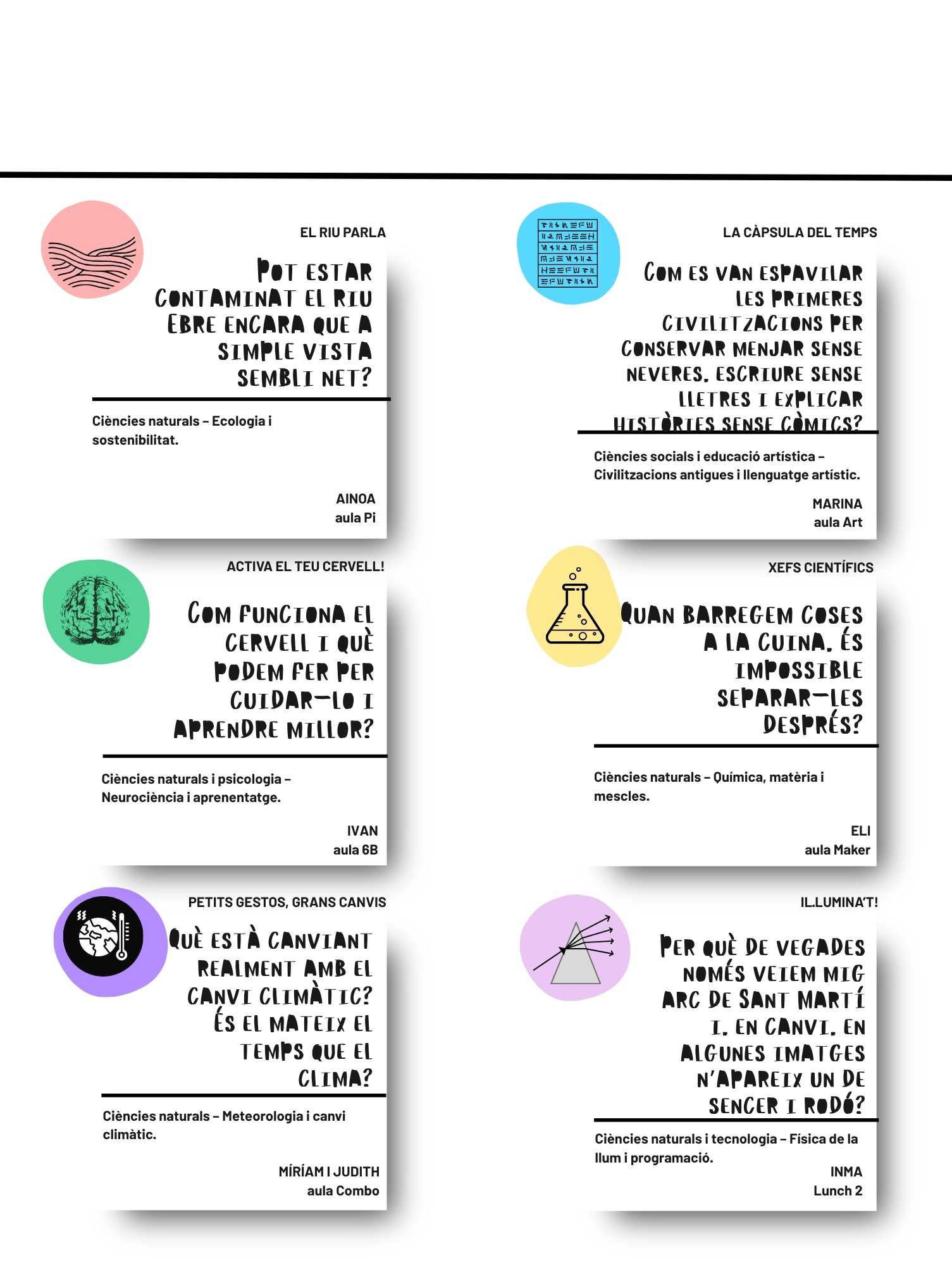 Els catàlegs de caixes d’aquest curs recullen totes les propostes disponibles per a cada etapa educativa, amb l’objectiu d’enriquir el currículum i fer més completa la formació dels nostres alumnes. Una aposta del centre per continuar construint un aprenentatge rigorós, viu i connectat amb el món real.