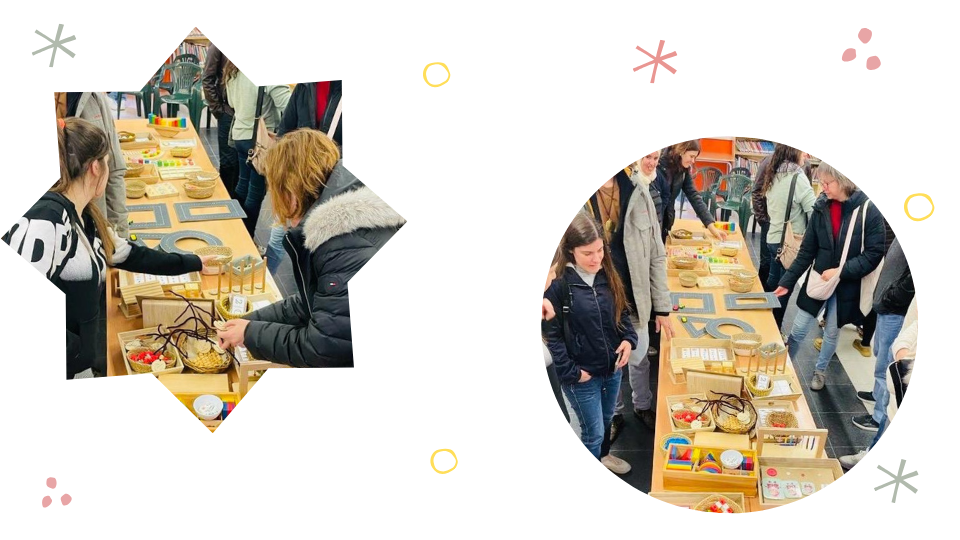 L’alumnat compta, emparella, associa grafies amb quantitats i juga amb materials com botons, pedres, pinces o daus. Es treballen conceptes com “un més”, “un menys”, la correspondència i el recompte. Tot de forma manipulativa i vivencial.