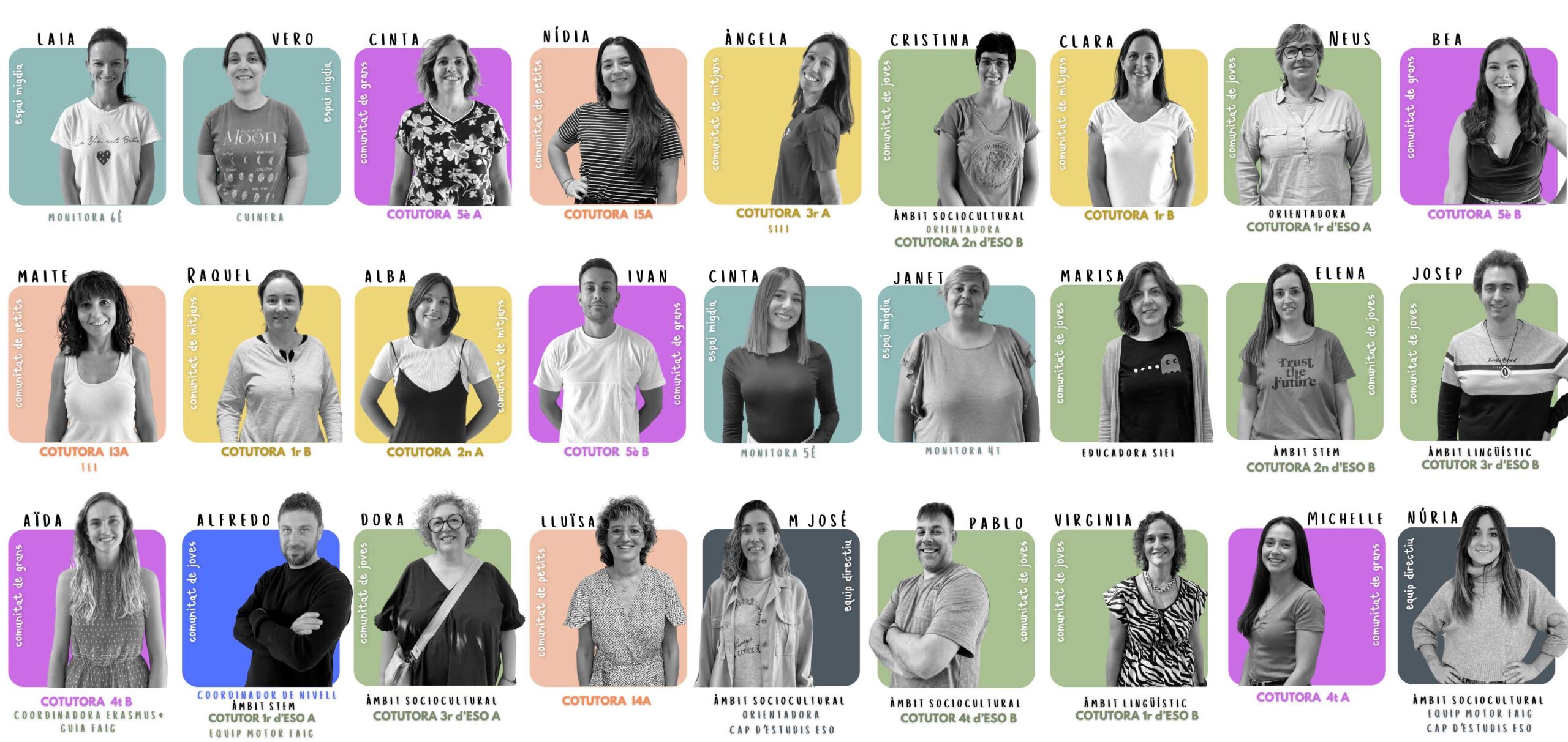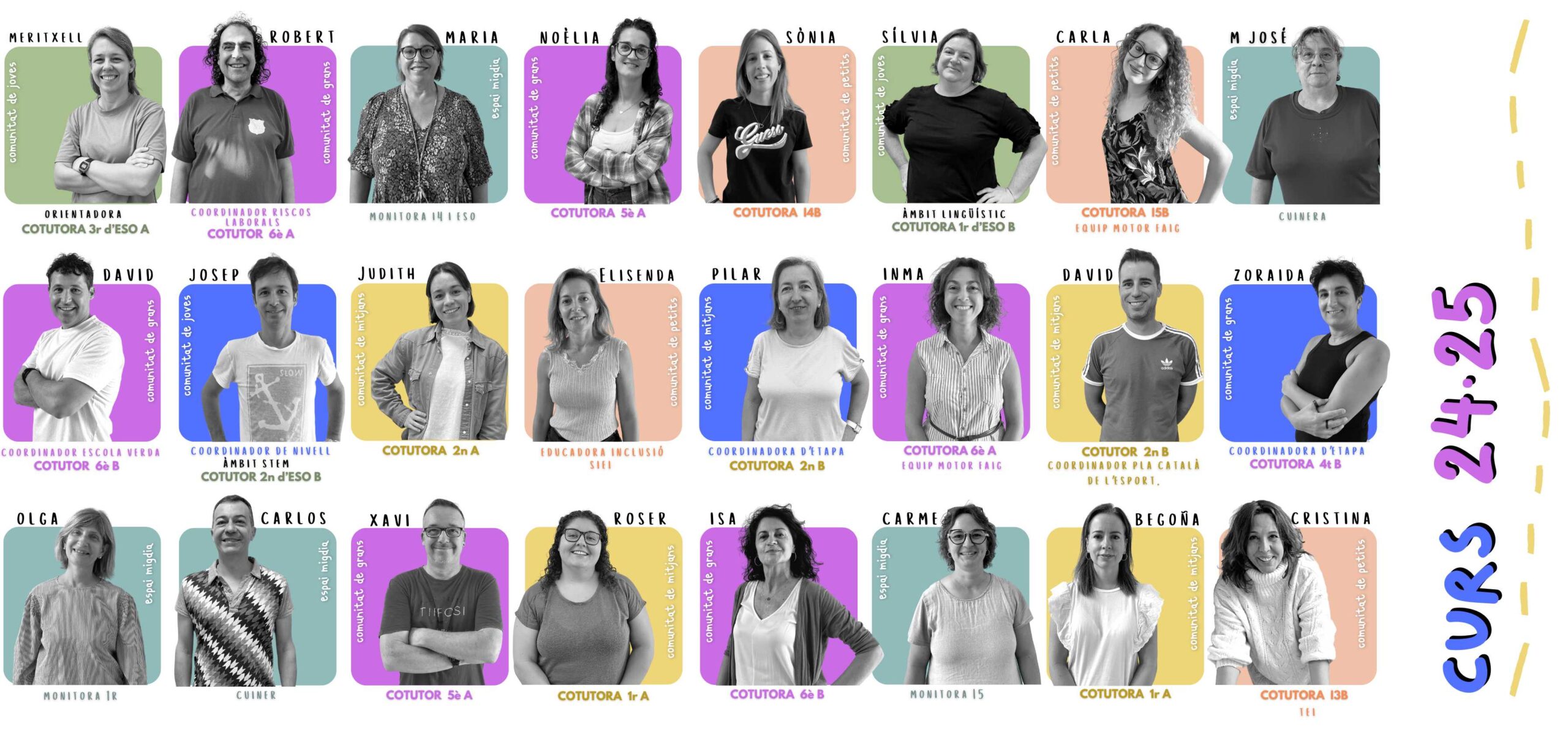 La comunitat educativa és com un gran mosaic ple de colors i textures, on cada peça, per petita que sembli, és essencial per completar el quadre. En aquest univers d’escola, els tutors, mestres, professors, monitores de menjador, cuiners, conserges… són les mans invisibles que teixeixen el fil de la vida quotidiana dels infants, creant un refugi on créixer, aprendre i somiar.