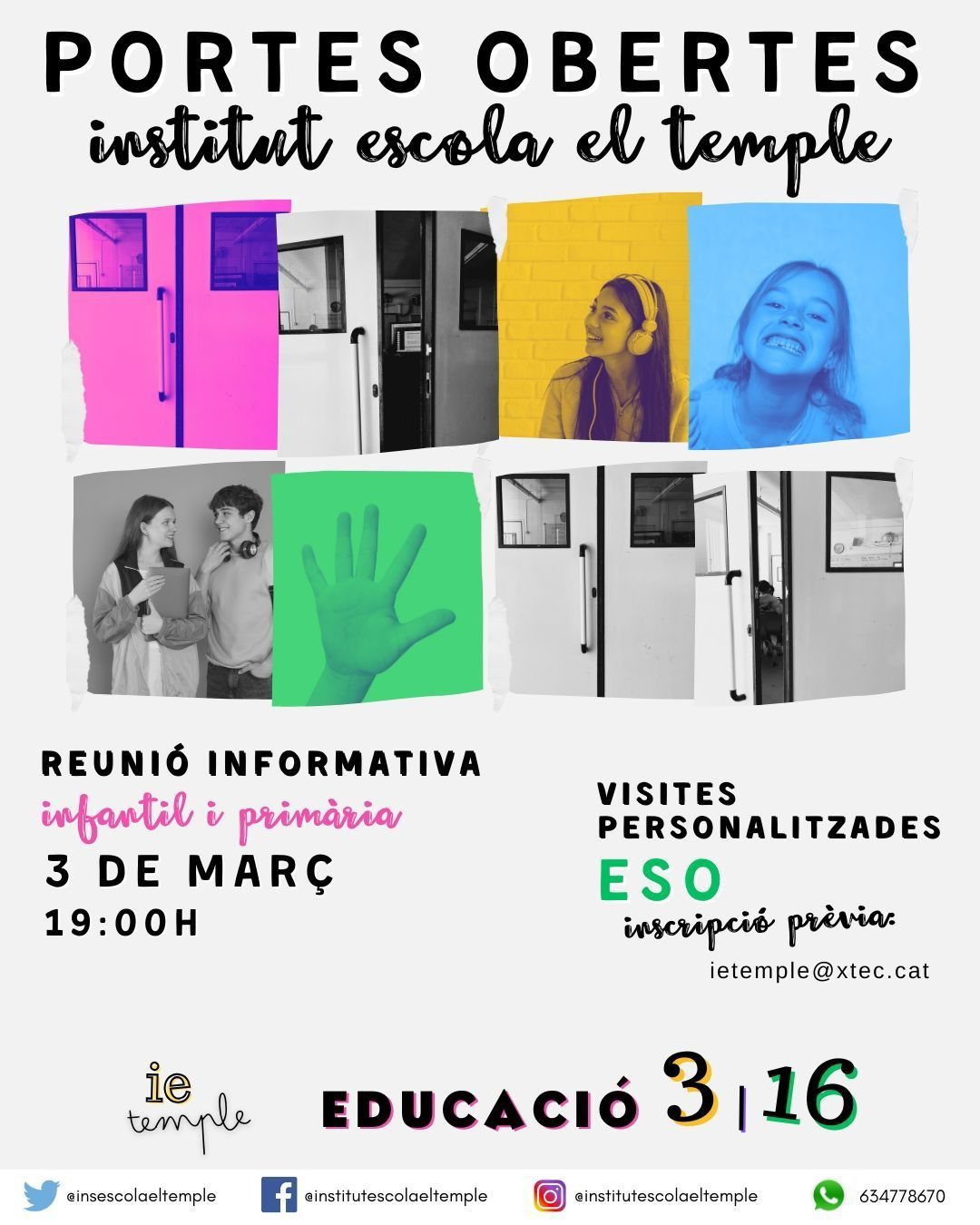 A més, per a totes les etapes oferim visites en acció, una oportunitat per veure el centre en funcionament i conèixer de prop el nostre dia a dia. Inscripcions per als dies 4, 5 i 6 de març disponibles a visites.ietemple.cat.