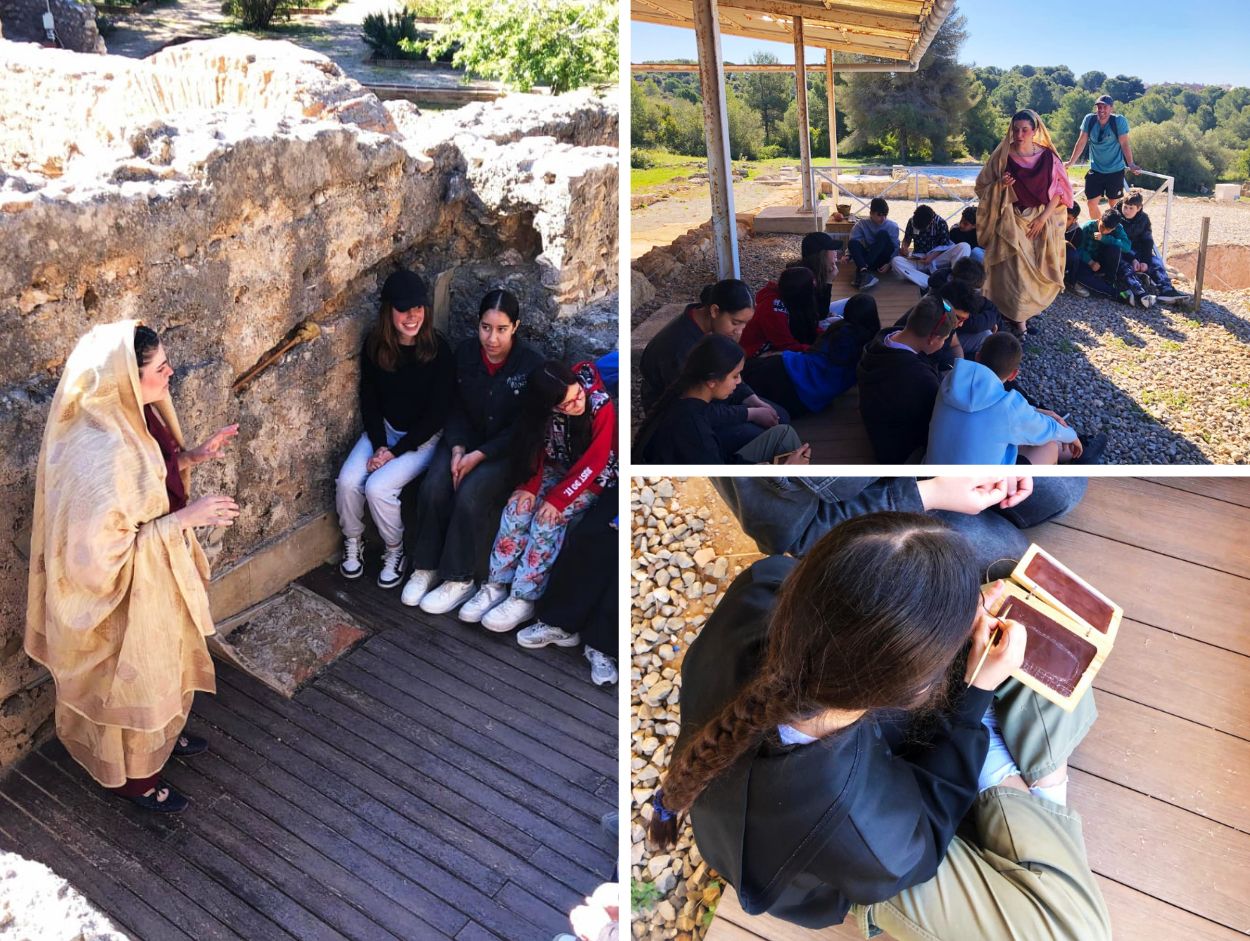 La visita a la Vil·la dels Munts ens va permetre endinsar-nos en la vida quotidiana d’una família romana de l’elit. De la mà de Caius i Faustina —personatges que ens van guiar a través del temps— vam recórrer les diferents estances de la vil·la i vam descobrir com s’organitzava una finca romana, quins eren els seus costums i quins luxes definien el seu dia a dia.