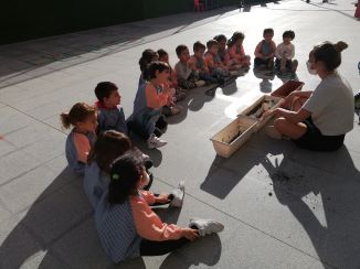 Hem començat a plantar l’hort de P4. Cada dia plantarà una classe fins que estigui tot plantat. Hem de regar