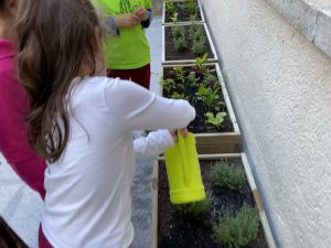 Aquest curs treballem el projecte de l’hort. Al pati d’infantil hem plantat a les jardineres i tenim una tasca que