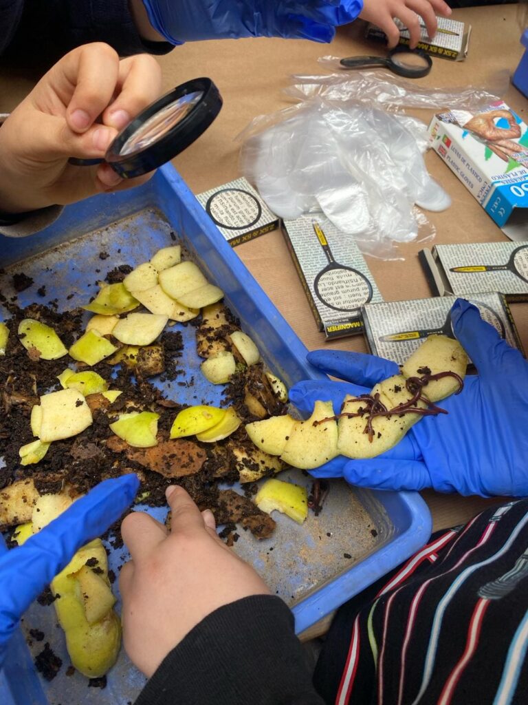 Els eco-delegats de cinquè han fet una sessió sobre el vermicompostatge als seus companys i companyes de quart de primària.