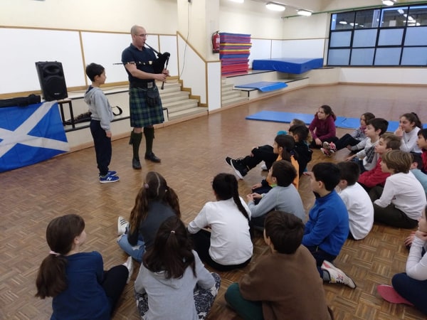 Els dos grups de 4t vam fer un taller de danses escoceses amb en David, un noi escocès. També ens