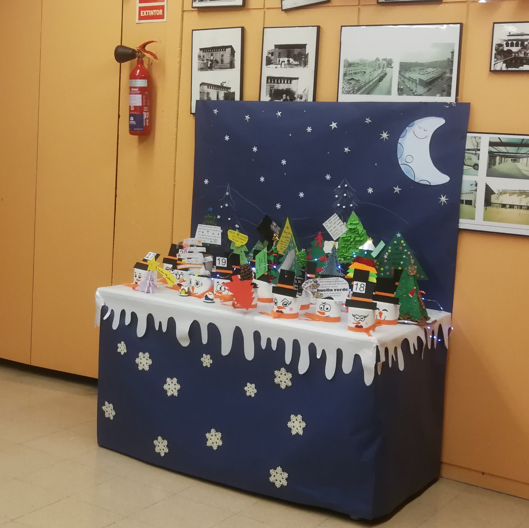 Nosaltres som els més grans de l’escola, però ens encanta anar a portar al nostre arbre fet amb paper i amb un missatge amb idees per salvar el planeta i a la vegada us felicitem el NADAL.