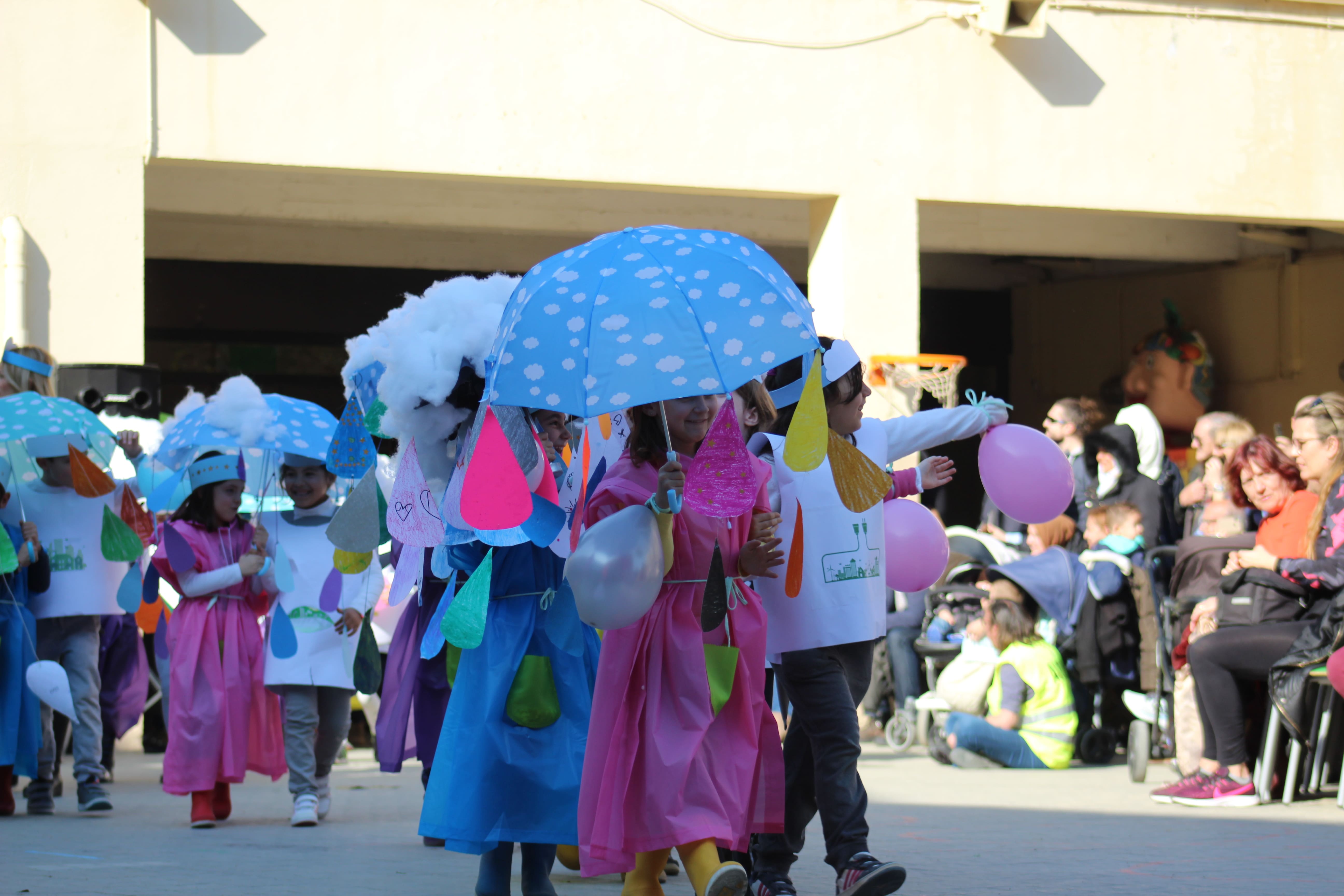 Els nens i les nenes de primer també us volem ensenyar la importància de l’aigua: “L’aigua malgastada és vida trepitjada” i també l’energia del vent que no s’esgota ni embruta. Les nostres disfresses són molt xules i hem ballat molt, ha sigut molt guai!