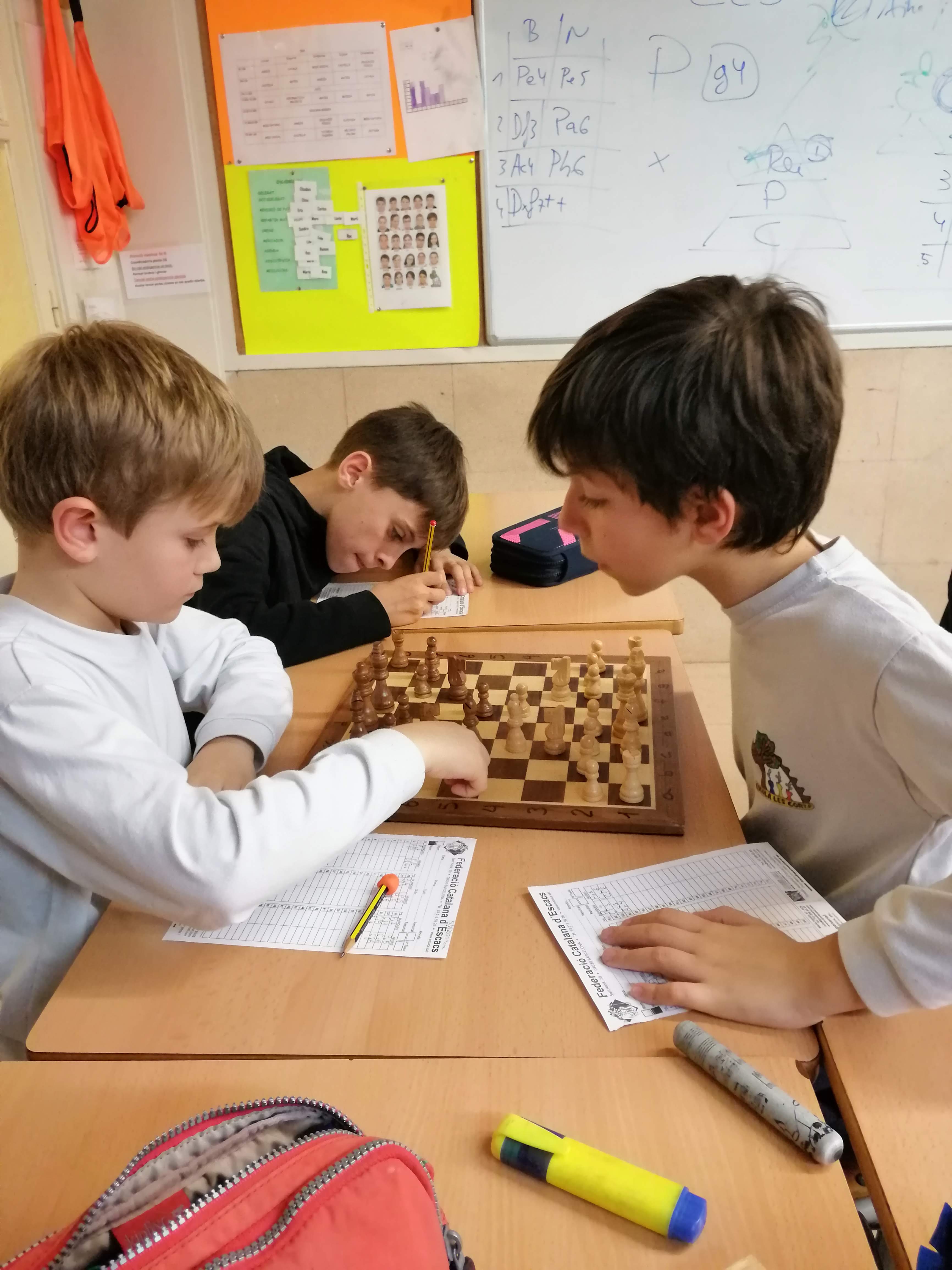 Els nois i les noies de cinquè estem aprenent a jugar a escacs, és un esport i un joc que va molt bé per treballar el pensament. Ens agrada molt i estem aprenent moltes coses!