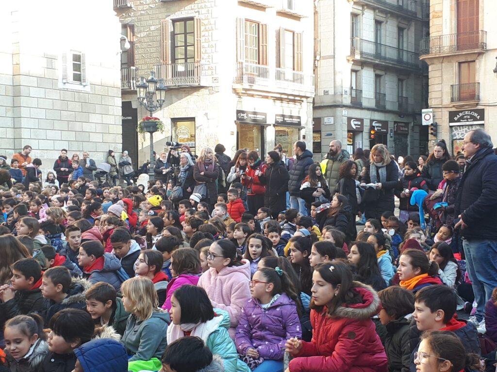 El passat divendres 10 de febrer de 2023, coincidint al l’inici de les festes de Santa Eulàlia, els alumnes de 5è de Primària van participar en la lectura del Pregó dels Infants a la Plaça Sant Jaume . Aquest any han fet especial atenció al dret a la llibertat d’expressió i es titulava “Volem ser escoltats!”.
