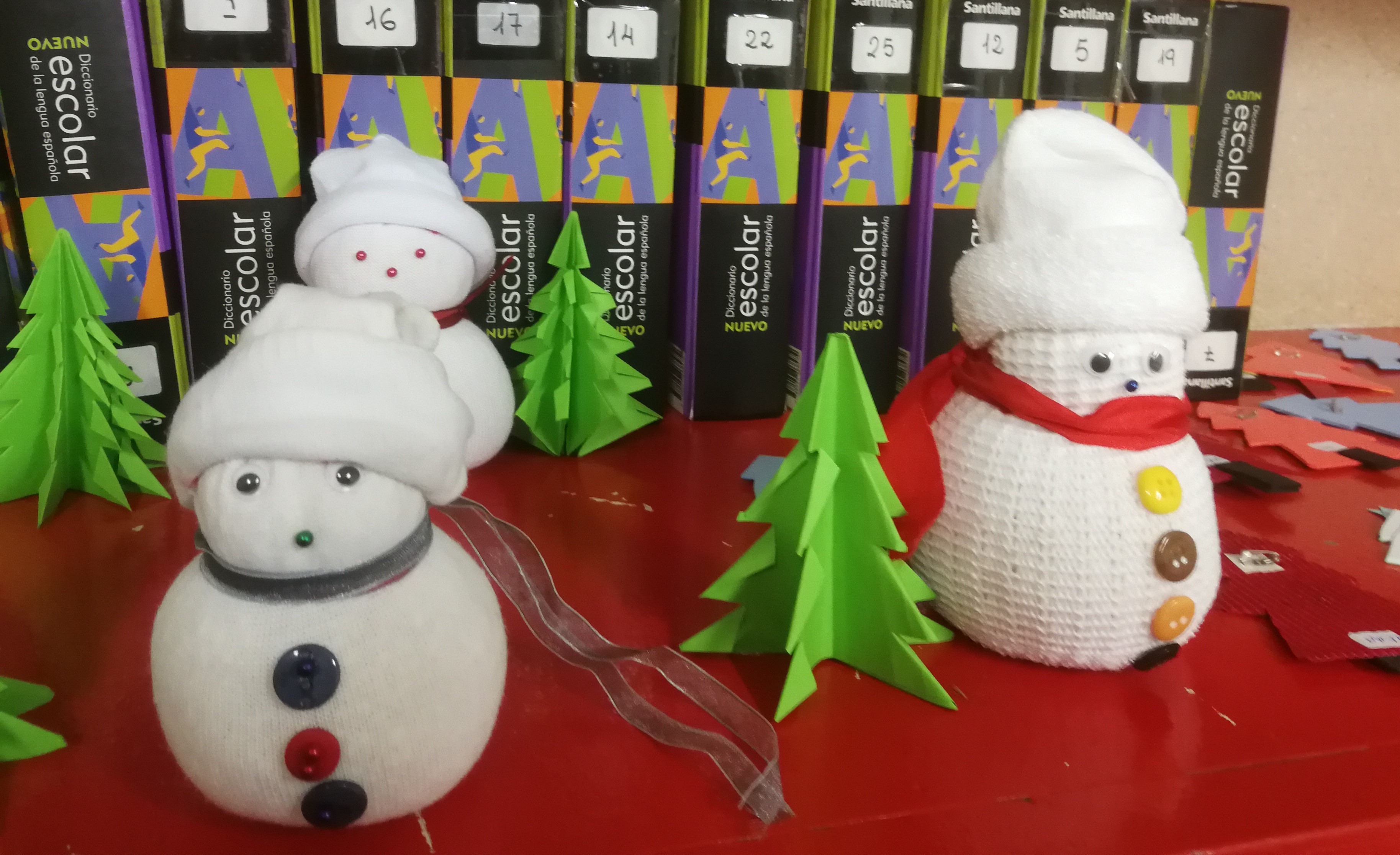 Els alumnes de sisè hem fet uns ninots de neu amb mitjons que ens han quedat molt divertits, hi ha de totes mides: petits i rodonets. Però tos ens han quedat molt bé: