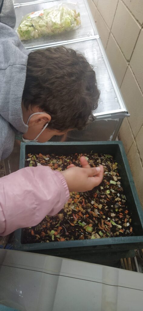 A les estones de pati els alumnes s’ apropen a l’espai sostenible a observar i ajudar a mantenir el compostador i el vermicompostador ( o granja de cucs) del nostre centre.