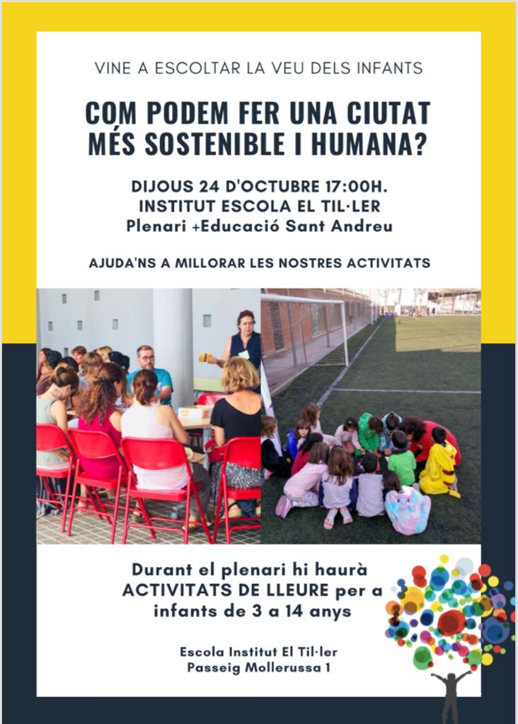 24/10/19Avui dijous 24 a les 17h a l’Institut Escola El Til·ler ens trobarem per fer el plenari del +Educació.